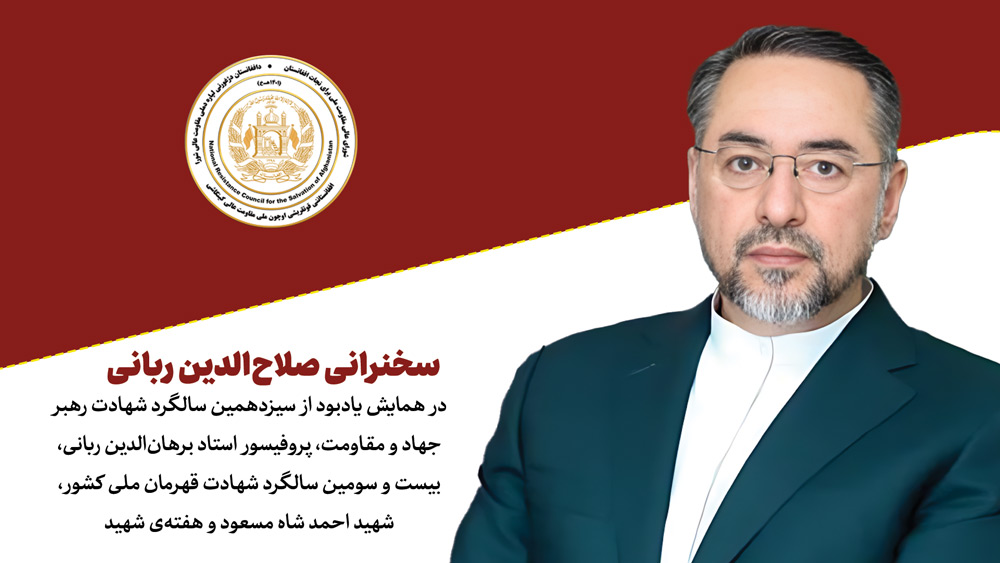 بروز یکشنبه، ۲۵ سنبله سال ۱۴۰۳ هجری خورشیدی، شورای عالی مقاومت ملی برای نجات افغانستان، طی همایش شکوهمندی از سیزدهمین سالگرد شهادت شهید صلح، رهبر جهاد و مقاومت، پروفیسور استاد برهانالدین ربانی، بیست و سومین سالگرد شهادت قهرمان ملی کشور، شهید احمدشاه مسعود و هفتهی شهید، یادبود بعمل آورد. در این مراسم رهبران شورای عالی مقاومت ملی سخنرانی نمودند. در این بخش، سخنرانی جناب صلاحالدین ربانی، عضو شورای رهبری شورای عالی مقاومت ملی برای نجات افغانستان را بیننده باشید.
