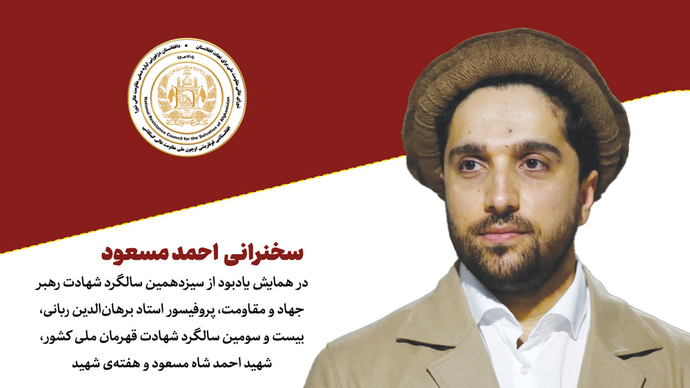 بروز یکشنبه، 25 سنبله سال 1403 هجری خورشیدی، شورای عالی مقاومت ملی برای نجات افغانستان، طی همایش شکوهمندی از بیست و سومین سالگرد شهادت شهید صلح، رهبر جهاد و مقاومت، پروفیسور استاد برهانالدین ربانی، سیزدهمین سالگرد شهادت قهرمان ملی کشور، شهید احمدشاه مسعود و هفتهی شهید، یادبود بعمل آورد. در این مراسم رهبران شورای عالی مقاومت ملی سخنرانی نمودند. در این بخش، سخنرانی جناب احمد مسعود، عضو شورای رهبری شورای عالی مقاومت ملی برای نجات افغانستان را بیننده باشید.