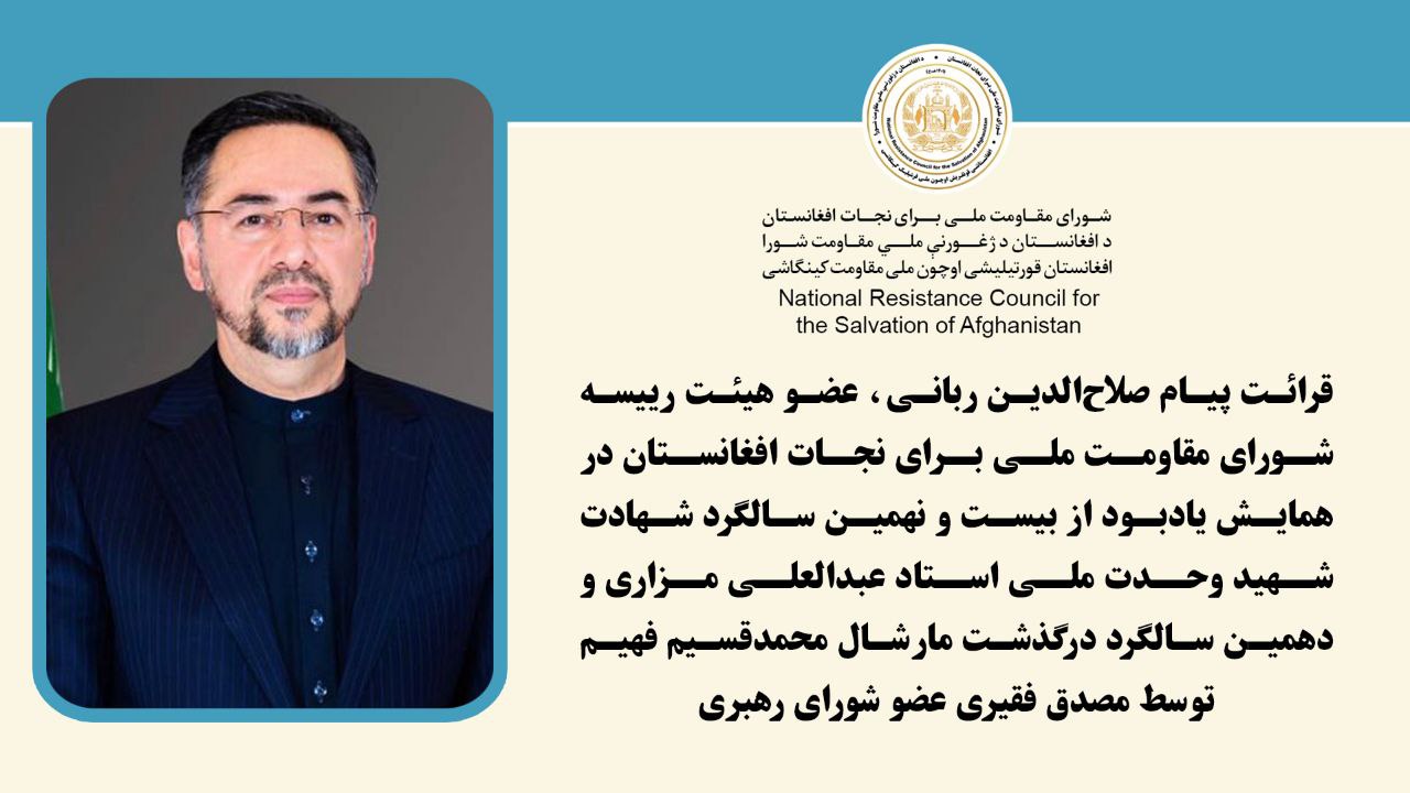 بروز ۲۲ حوت سال ۱۴۰۲ از بیست و نهمین سالگرد شهادت شهید وحدت ملی استاد عبدالعلی مزاری و دهمین سالگرد درگذشت مارشال محمد قسیم فهیم، طی همایشی از سوی شورای مقاومت ملی یادبود بعمل امد.
